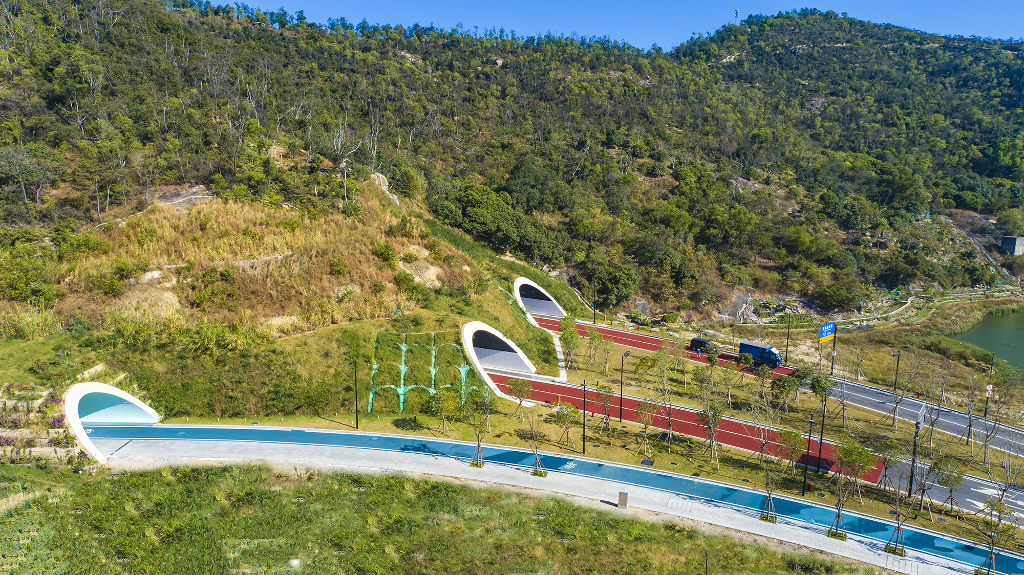 天羽道隧道位于橫琴粵澳深度合作區(qū),穿越小橫琴山,北起環(huán)島北路,南至風(fēng)吹羅帶路,由兩條雙車道車行隧道和一條人非混行隧道組成。天羽道隧道快速連接環(huán)島北路和港澳大道,打通了小橫琴山南北兩側(cè)的交通網(wǎng)絡(luò),極大提升了國際居住區(qū)、天沐河區(qū)域與環(huán)島北路片區(qū)的交通聯(lián)系。