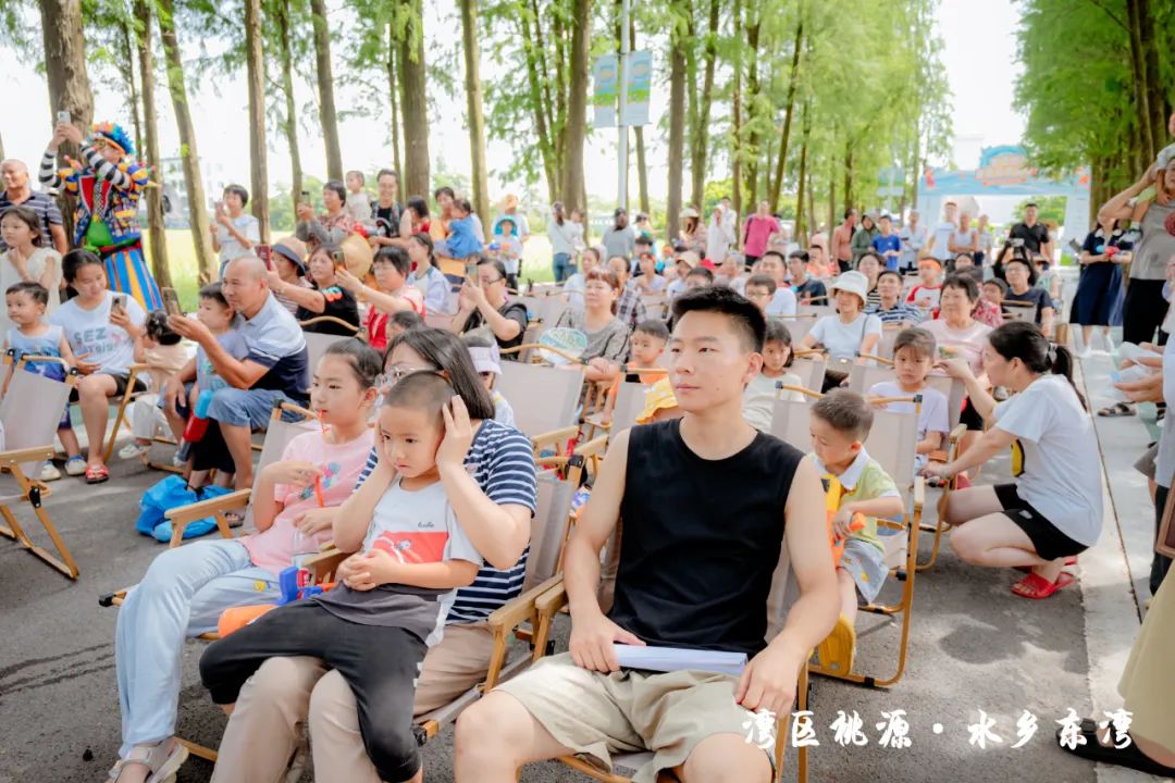 隨后,現(xiàn)場(chǎng)的水車(chē)伴著歡笑聲噴灑出陣陣水霧,也標(biāo)志著此次“東灣夏日清涼大作戰(zhàn)”活動(dòng)正式開(kāi)始。在接下來(lái)的兩天時(shí)間里,活動(dòng)將充分結(jié)合東灣村民俗文化和稻田、河涌等良好的生態(tài)環(huán)境基底,通過(guò)農(nóng)艇競(jìng)渡、趣味戲水、非遺剪影、東灣美食、清涼集市等元素,將傳統(tǒng)鄉(xiāng)村元素與現(xiàn)代競(jìng)技、活動(dòng)相融合,打造一系列清涼刺激的互動(dòng)體驗(yàn)?;顒?dòng)形式豐富多樣,既有團(tuán)隊(duì)合作的競(jìng)技項(xiàng)目,也有輕松愉快的趣味游戲,還有特色清涼集市供游客休閑購(gòu)物,可謂是“面面俱到”。