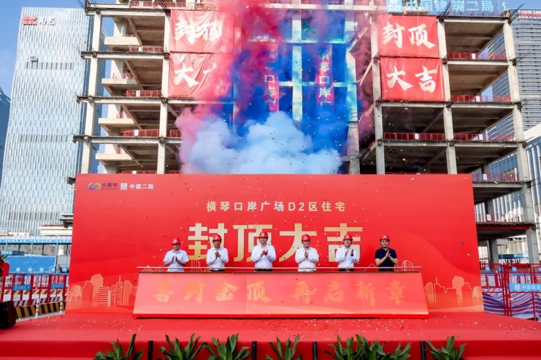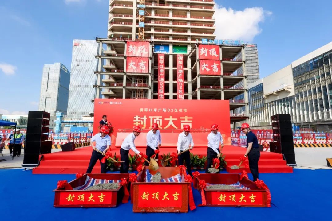 9月27日上午,由珠海大橫琴集團(tuán)有限公司(以下簡稱大橫琴集團(tuán))下屬企業(yè)珠海大橫琴口岸實(shí)業(yè)有限公司建設(shè)的橫琴口岸D2區(qū)住宅主體結(jié)構(gòu)順利封頂。大橫琴集團(tuán)黨委副書記、董事、總經(jīng)理王宇聲,中建二局華南公司黨委書記、董事長曲紅波,大橫琴集團(tuán)總經(jīng)理助理呂海濤等領(lǐng)導(dǎo)嘉賓出席儀式,各參建單位代表及項(xiàng)目一線職工共計100余人參加活動。