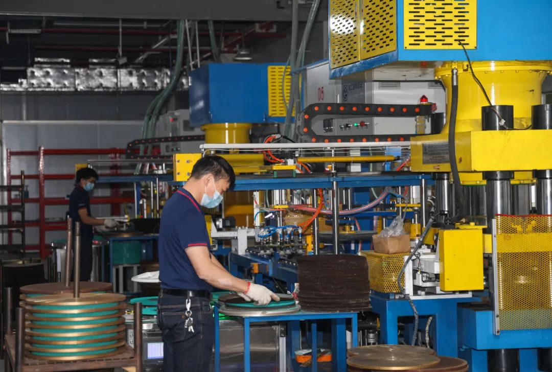 步入車間,智能化設(shè)備高效運(yùn)轉(zhuǎn),厚度1至6毫米的砂輪經(jīng)過(guò)精密加工后整齊排列,即將發(fā)往全球市場(chǎng)。