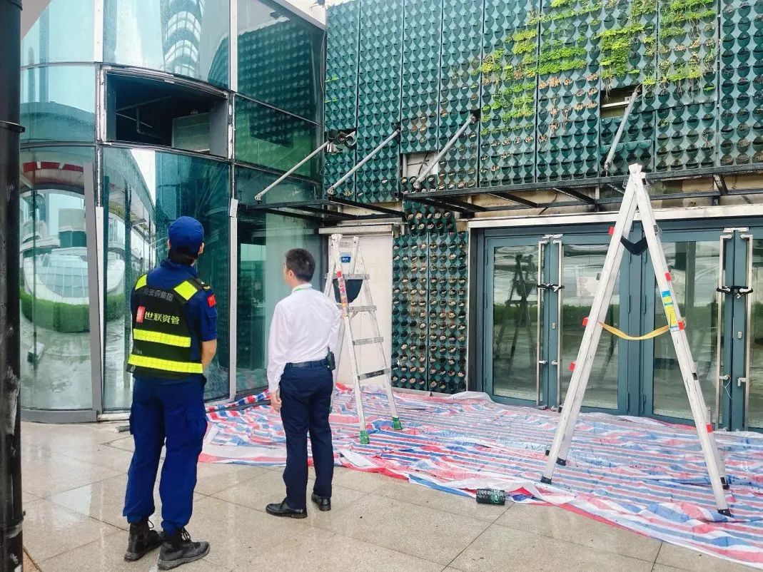 一是對(duì)園區(qū)內(nèi)所有建筑物門窗關(guān)閉情況進(jìn)行檢查,安排人員上門協(xié)助企業(yè)客戶關(guān)閉門窗并建立留存企業(yè)應(yīng)急聯(lián)系人聯(lián)系方式。二是對(duì)園區(qū)內(nèi)種植樹木進(jìn)行檢查,已加固并將過多過長的樹枝修剪858余棵。三是清理各建筑物樓頂天面雜物,疏通天面下水系統(tǒng);檢查各區(qū)地面排水井道,清理井內(nèi)雜物。四是放置防汛沙袋2200包至園區(qū)電梯、展廳處、天面、商鋪入戶門、樓層連廊、地庫入口等重點(diǎn)部位。五是收回園區(qū)室外水馬、鐵馬、雪糕筒、拒馬、商業(yè)外擺、煙灰缸、垃圾桶、花箱、一米欄、國旗等室外可移動(dòng)物品約500個(gè)。六是協(xié)助企業(yè)客戶搬運(yùn)外擺花箱、休息桌椅、太陽傘物品約20余套。七是發(fā)出臺(tái)風(fēng)預(yù)警信號(hào)溫馨提示6宗。八是關(guān)閉斗門大橫琴5.0產(chǎn)業(yè)新空間C區(qū)及橫琴國際科技創(chuàng)新中心4幢運(yùn)動(dòng)中心。九是啟動(dòng)橫琴國際科技創(chuàng)新中心9號(hào)樓應(yīng)急避難場(chǎng)所1處,接收避難工人534 人。備用斗門大橫琴5.0產(chǎn)業(yè)新空間應(yīng)急避難場(chǎng)所G1、G2、G3廠房3處,以滿足園區(qū)防御工作需要。