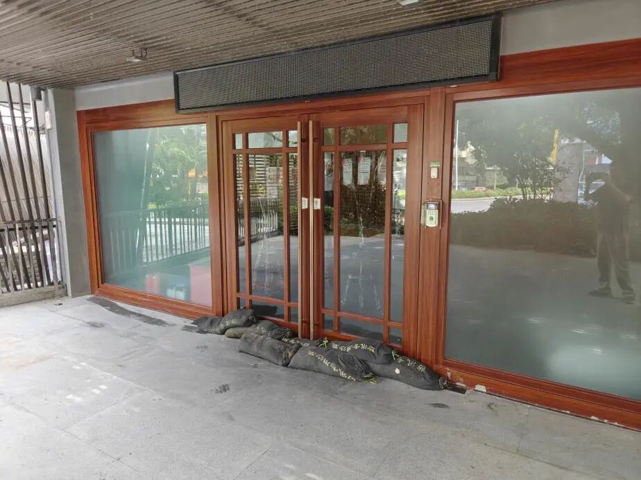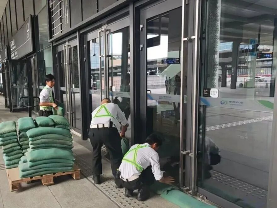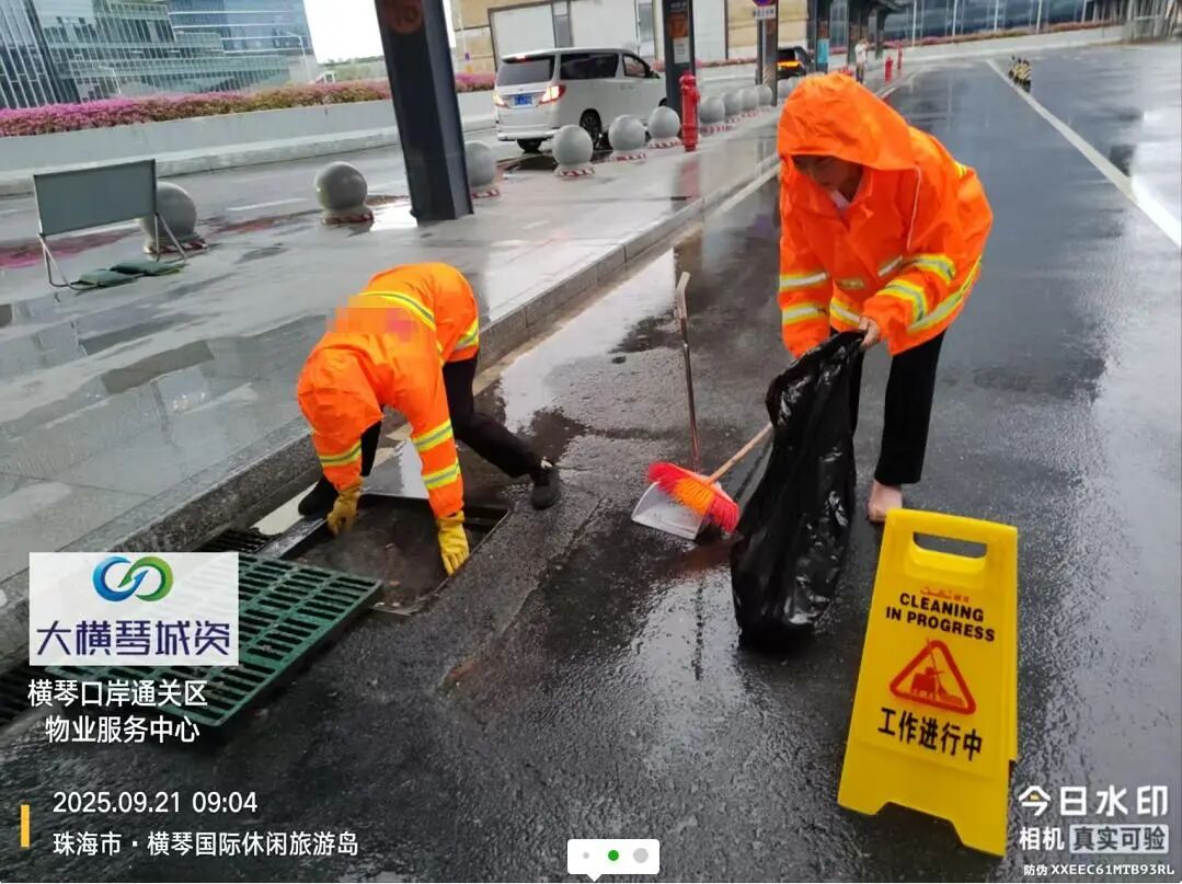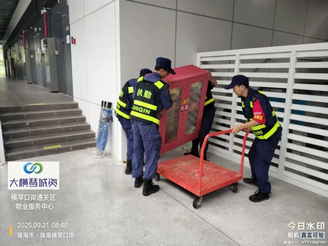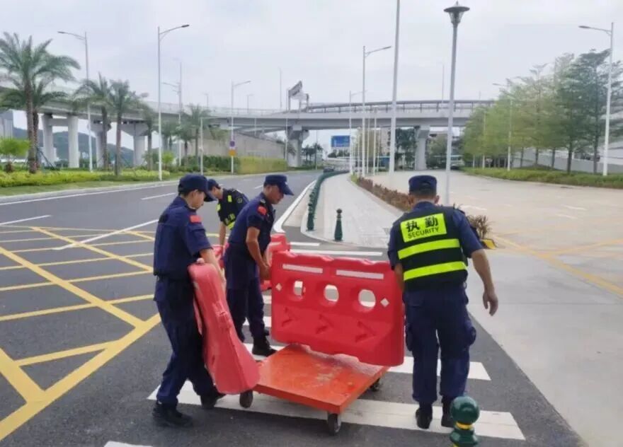 在橫琴口岸區(qū)域,提前排查200多個集水井,調(diào)集230個緊固件加固門窗,近3000條沙袋、近100個防洪擋板、11臺水泵等應(yīng)對福臨道、地庫36處接駁口、負二層下沉庭院、U行車道等重點區(qū)域強排和封堵需要。同時對通關(guān)區(qū)域的100余扇玻璃門進行加固,在易水浸區(qū)域放置沙袋、擋板。同時,全面清理雨水井、排水溝渠,確保排水暢通。