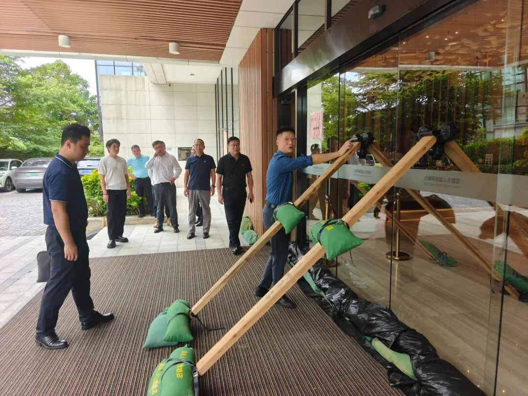 對珠光集團旗下園區(qū)內(nèi)的樓宇廣告牌、生命通道、應(yīng)急避難場所等防汛防風(fēng)部位的隱患全面排查和清理。要求應(yīng)急人員全部到崗到位,對防汛物資,應(yīng)急物資準(zhǔn)備情況以及值班、搶險隊伍備勤情況和園區(qū)建筑物排水系統(tǒng)、消防系統(tǒng)、監(jiān)控系統(tǒng)、外立面及門窗系統(tǒng)進行全面排查。做好園區(qū)企業(yè)客戶的安全保障工作,同時對園區(qū)企業(yè)和商戶盡數(shù)告知和勸導(dǎo),堅決落實“五停”措施,預(yù)備應(yīng)急避難場所。